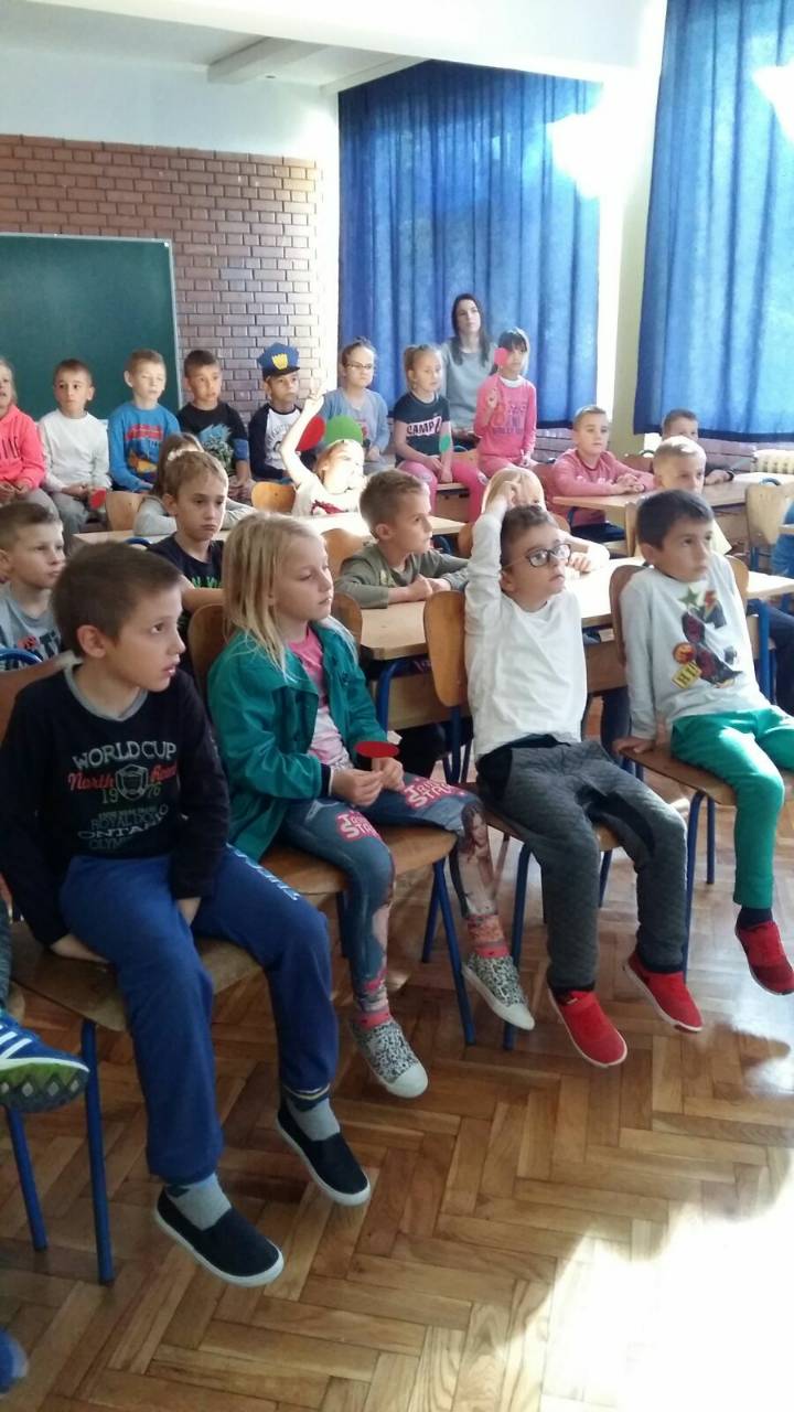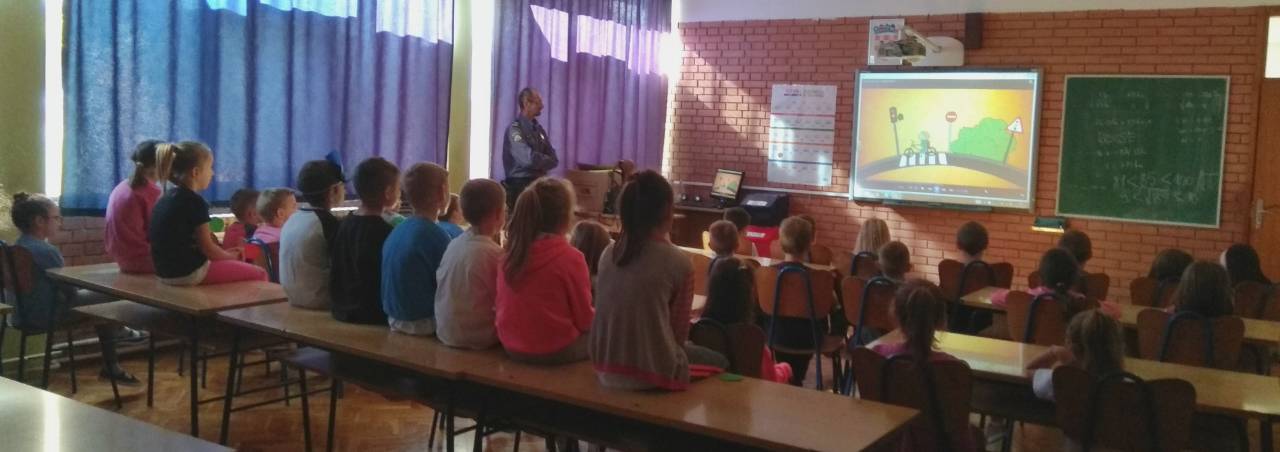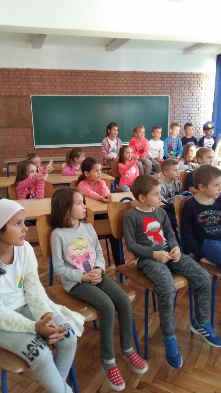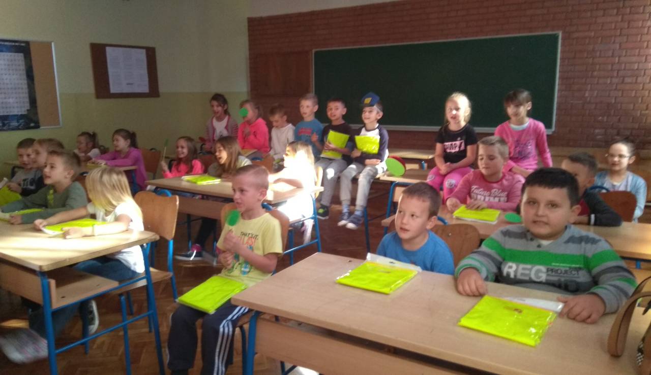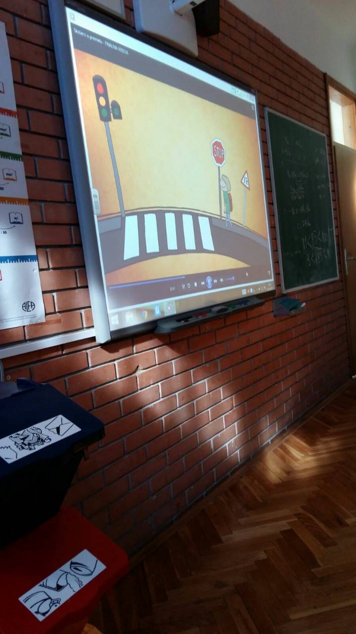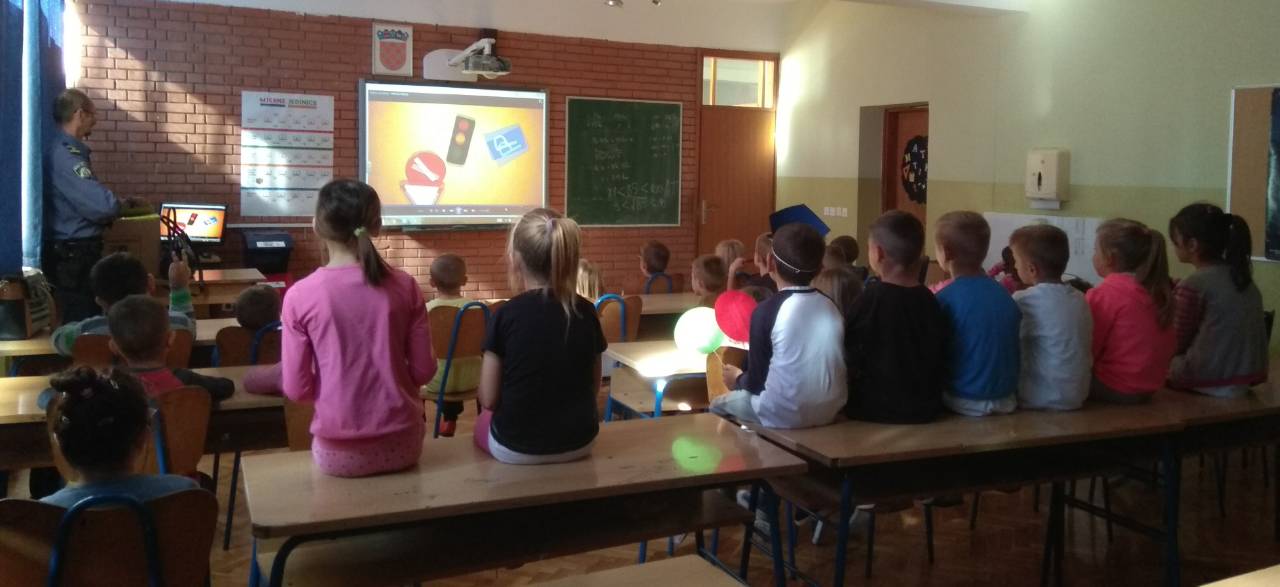 Gospodin Pero učenike je razgovorom te prigodnim crtanim filmom podsjetio na važnost opreznog ponašanja u prometu. Strpljivo je saslušao učenička prometna iskustva te odgovarao na sva njihova pitanja.
