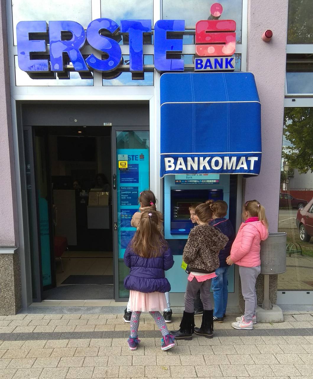 Aktivnosti smo započeli još početkom mjeseca kada su se učenici uključeni u Likovnu radionicu na poziv knjižničarke Antonele prijavili na natječaj Erste banke „Udružimo ruke i šape za bolje sutra!“kojim se dodjeljuju novčana sredstva. Plakat kojim smo sudjelovali na natječaju, odnjeli smo u poslovnicu Erste banke uoči Svjetskog dana štednje, 30.10.2017.g. Djelatnice otočke Erste banke su izrazito srdačno dočekale predstavnike razreda, počastile ih grickalicama i sokom te im ukratko objasnile i pokazale banku i rad u banci. Na rastanku su učenici dobili prigodne poklone.