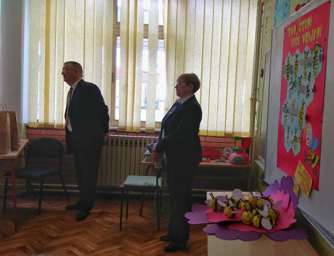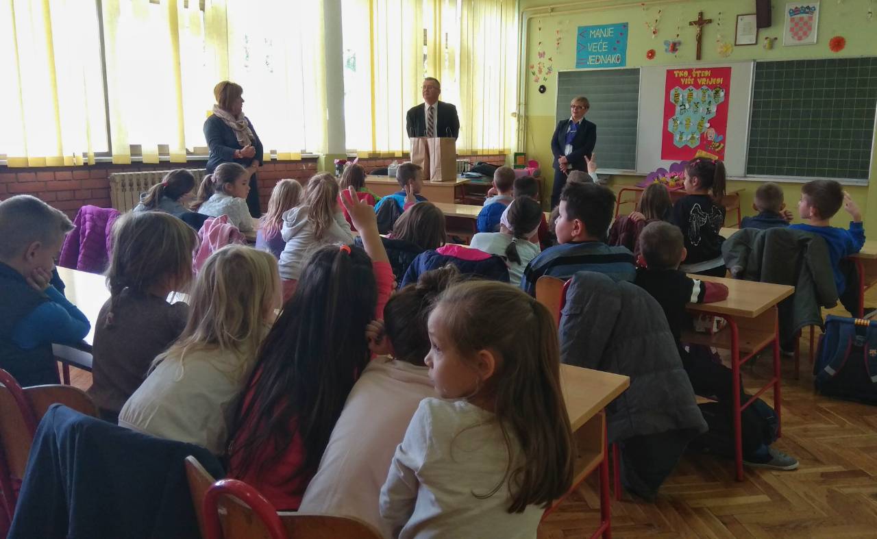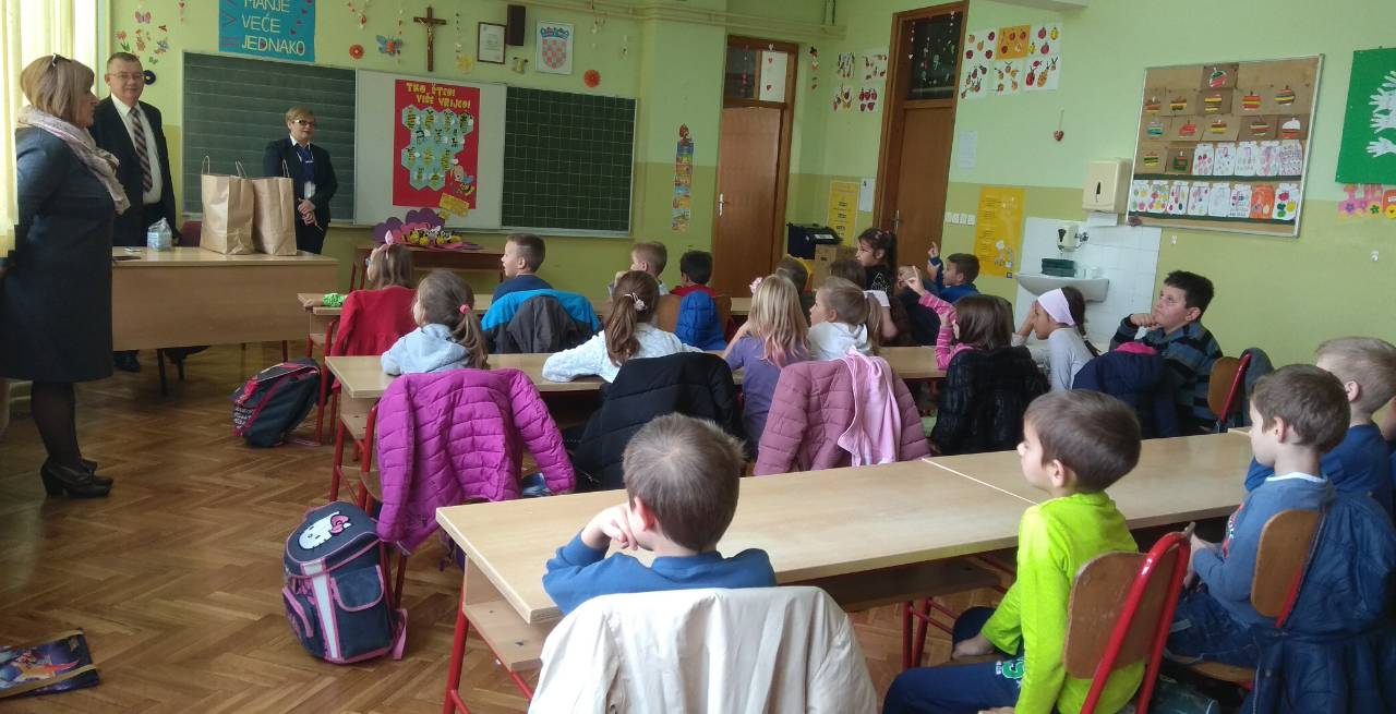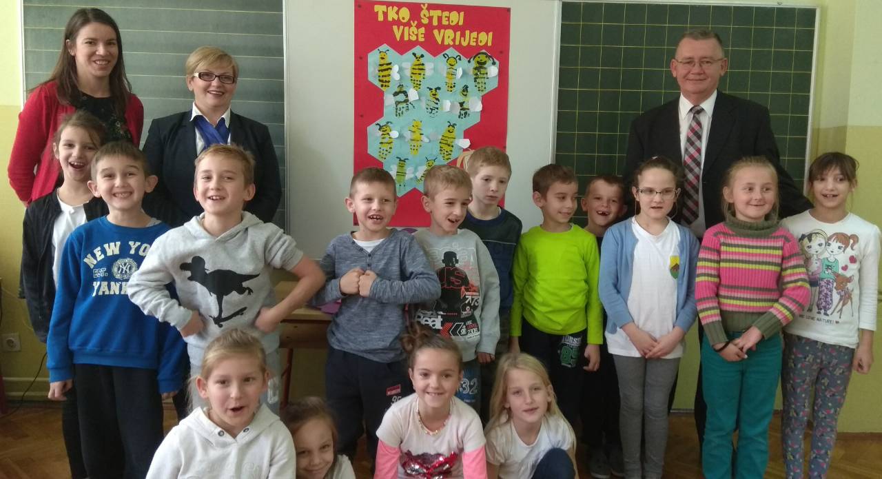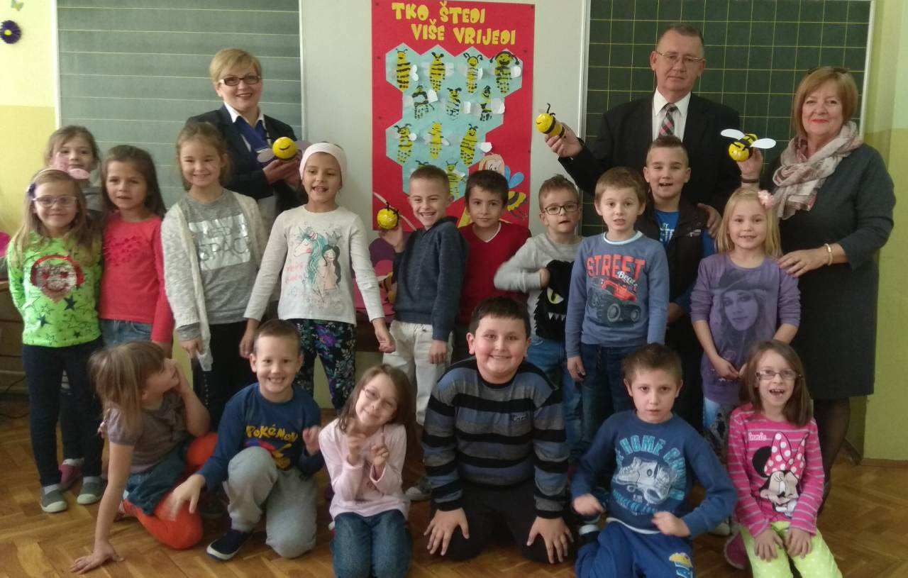 Na sam Dan štednje, 31.10.2017.g., u razredu smo ugostili direktora Zagrebačke banke, gospodina Antu Kurtušića i djelatnicu, gospođu Danijelu. Oni su na vrlo jednostavan način objasniliučenicima način štednje, vrijednost novca i ukazali na pozitivne strane štednje i čuvanja novca. Učenici su gostima izradili prigodan plakat te kasice pčelice koji će biti izloženi u njihovoj poslovnici u Vinkovcima, a gosti su učenicima poklonili: bojanke, bilježnice, blokiće, kasice, društvene igre za razred… Koliko je gostovanje bilo edukativno i uspješno najviše pokazuju pozitivni komentari učenika, koji su se odlučil štedjeti u svojim kasicama.